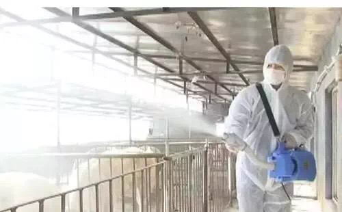 棟舍內(nèi)部使用過硫酸氰鉀1:400溶液帶豬噴霧消毒,每周兩次;產(chǎn)房可以使用干粉消毒代替;定期用溴氰菊酯或貝特溶液噴霧滅蚊蠅;