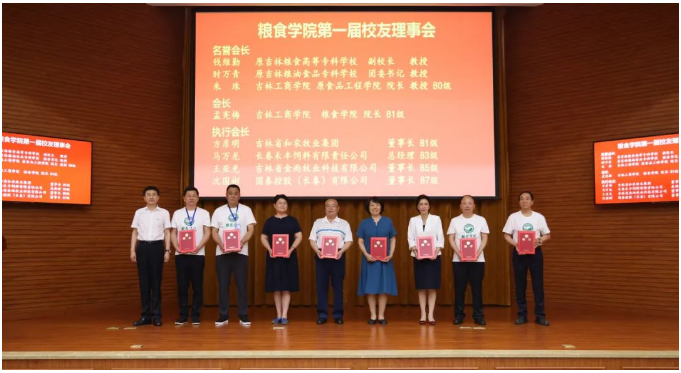 學(xué)校黨委副書(shū)記、校長(zhǎng)張?jiān)浇?,黨委副書(shū)記杜希剛,副校長(zhǎng)徐文出席大會(huì)。學(xué)校校友工作辦公室、各職能部門(mén)與教學(xué)單位主要負(fù)責(zé)人相關(guān)代表、糧食學(xué)院全體教職員工、來(lái)自全國(guó)各地的優(yōu)秀校友和在校學(xué)生代表共計(jì)180余人參加大會(huì)。吉林和農(nóng)牧業(yè)集團(tuán) 董事長(zhǎng)方彥明先生當(dāng)選 吉林工商學(xué)院糧食學(xué)院第一屆校友理事會(huì)執(zhí)行會(huì)長(zhǎng)。